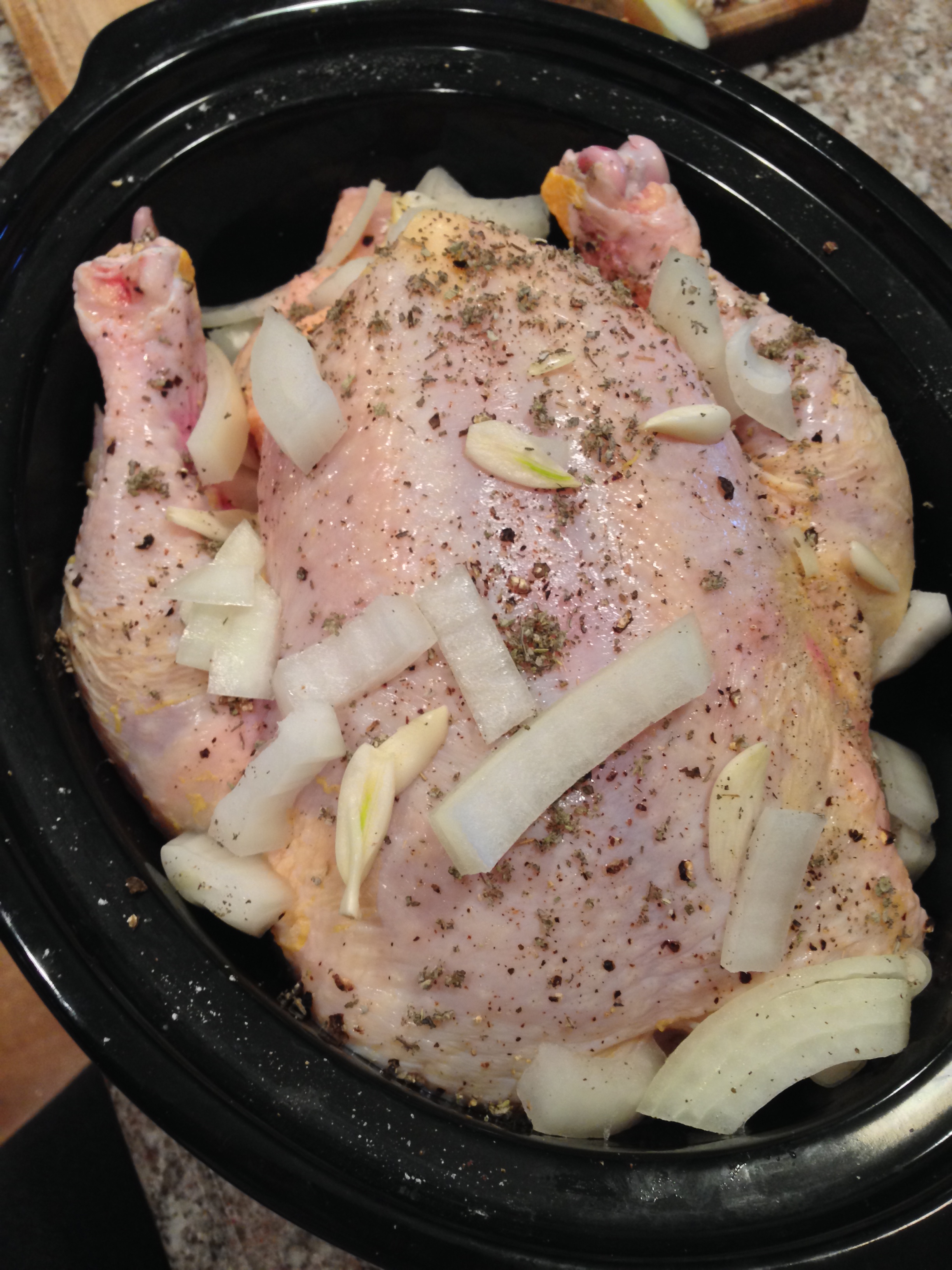 3-4 pounds of meat (I used a combo of 1/2 boneless skinless chicken breasts and pork tenderloin)